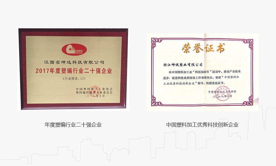 坤達集團始創(chuàng)于2003年,是一個集技術(shù)研發(fā)、品牌運營、規(guī)模化生產(chǎn)的塑編包裝產(chǎn)業(yè)鏈企業(yè)。旗下三大生產(chǎn)基地為浙江坤誠塑業(yè)有限公司、江西省坤達科技有限公司和江蘇坤達塑業(yè)有限公司,綜合實力榮登中國塑編行業(yè)十強企業(yè),其中浙江坤誠塑業(yè)有限公司獲評“國家高新技術(shù)企業(yè)”、“中國科技創(chuàng)新新銳企業(yè)”、“浙江塑料包裝企業(yè)研究開發(fā)中心”、“浙江省智能工廠(數(shù)字化車間)”、“浙江制造”團體標(biāo)準(zhǔn)起草單位、“溫州市工業(yè)互聯(lián)網(wǎng)平臺”、“溫州市兩化融合試點企業(yè)”等榮譽稱號。